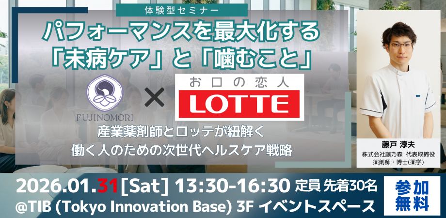 本イベントでは、産業薬剤師の視点による「オフィスや家庭でできる未病ケア」と、ロッテ様が長年研究されている「噛むこと(咀嚼)」の科学を掛け合わせ、今日から実践できる次世代のヘルスケアをご提案します。
