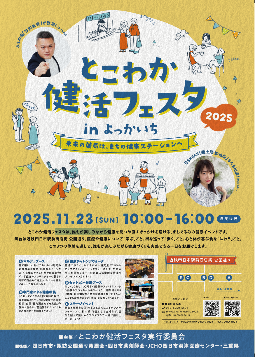 来る2025年11月23日に四日市一番街商店街におきまして「とこわか健活フェスタ in よっかいち」を開催いたします。